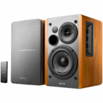 Edifier R1280T 2.0 Bookshelf Speakers, RCA, 0.5-inch Tweeters, 4-inch Drivers, 42W (RMS), Control Knobs and Remote Control, Brown