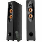 F&D T-60X PRO 2.0 Floorstanding Speakers, 120W RMS ( 60Wx2), 1” Tweeter + 4” Speakers x2 + 8” Subwoofer for each channel, BT 5.3/Optical/COAXIAL/AUX/USB/Karaoke function/LED Display/Remote control/Microphone/Wooden, Touch buttons, Black