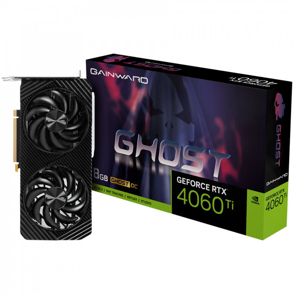 GAINWARD GeForce RTX 4060Ti Ghost 8GB GDDR6, 128 bits, 1x HDMI 2.1, 3x DP 1.4a, two fan, 1x 8-pin Power connector, recommended PSU 650W, NE6406T019P1-1060B.