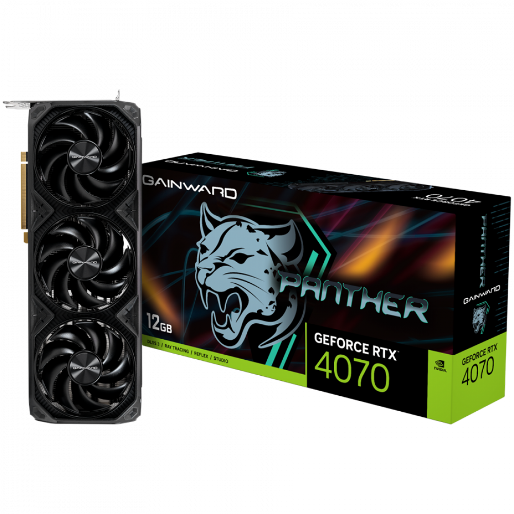 Gainward GeForce RTX 4070 Panther 12GB GDDR6X, 192 bit, 1x HDMI 2.1, 3x DP 1.4a, 3 Fan, 1x 8-pin power connector, recommended PSU 750W, NED4070019K9-1047Z