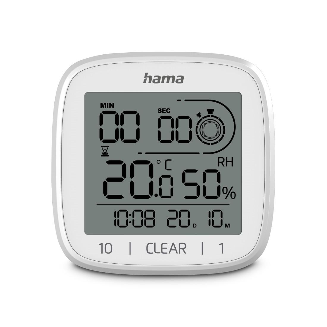 Подходящ за баня: Splashproof корпус Контрол на влажността за превенция на мухъл Много варианти за монтаж: Вендуза Поставка (Base) Отвор за окачване Индикатор за батерия: Да (Low Battery Indicator) Часовник и календар Формат на часа: 12 / 24 h Показване на дата: Ден / месец Тип дисплей: Дигитален Таймер Диапазон: 1 – 99 минути Термометър Обхват: 0°C до +50°C Единици: °C / °F (превключваеми) Хигрометър Обхват: 20% – 95% RH Функция: Следене на влажността за предотвратяване на конденз и мухъл Конструкция Материал корпус: Пластмаса Работен режим: Ръчен Размери и тегло Размери (Ш x В x Д): 11 x 11 x 4.5 cm Тегло: 165 g Захранване Тип батерии: 2 x AAA (Micro)