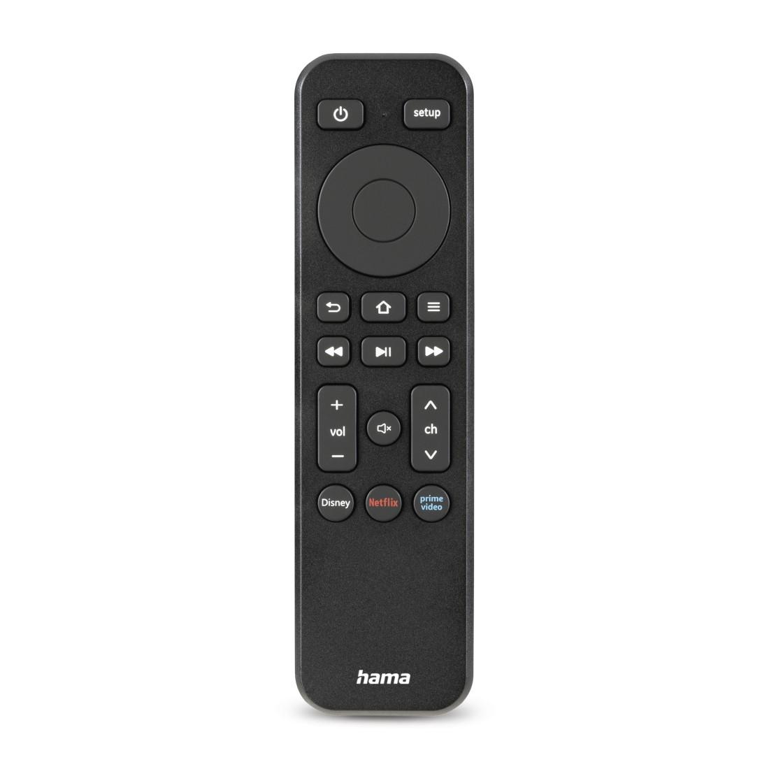 Основни характеристики Тип: универсално IR дистанционно, предназначено за управление на две устройства – TV и/или Set‑Top‑Box (STB) Предварително зададени кодове: обхваща над 1 000 марки (Samsung, LG, Philips, Sony, Panasonic и др.) Обучаеми бутони: възможност за прехвърляне на функции от оригинално дистанционно чрез learning mode Бутон App: директен достъп до стрийминг приложения като Netflix, Prime Video, Disney+ Технически данни Работен диапазон: до 10 м Захранване: 2 × AAA батерии (включени в комплекта) Размери: прибл. 140 × 38 × 19 мм Тегло: около 50–100 г (различни източници дават 50 г или 100 г) . Бутонно подсветление: да, може да се включва/изключва чрез комбинация Power + Mute Корпус: изработен от пластмаса, частично рециклирана Функции и работа Режим за задаване на код: натиснете и задръжте Setup за ~3 сек., след което въведете 98000 (TV) или 98001 (STB), и бутонът за прехвърляне на нова функция Обучение на бутон: след това се насочва дистанционното на оригинала към това – и ако светодиодът светне отново – операцията е успешна Изтриване на функция: код 98100/98101, последван от бутоните на дистанционното Възстановяване до фабрични настройки: код 99999 Подсветка: включване/изключване чрез Power + Mute; мига зелено/червено Macro Power: възможност да включвате/изключвате две устройства с един бутон (налично в по-големите модели, близки като принцип) .