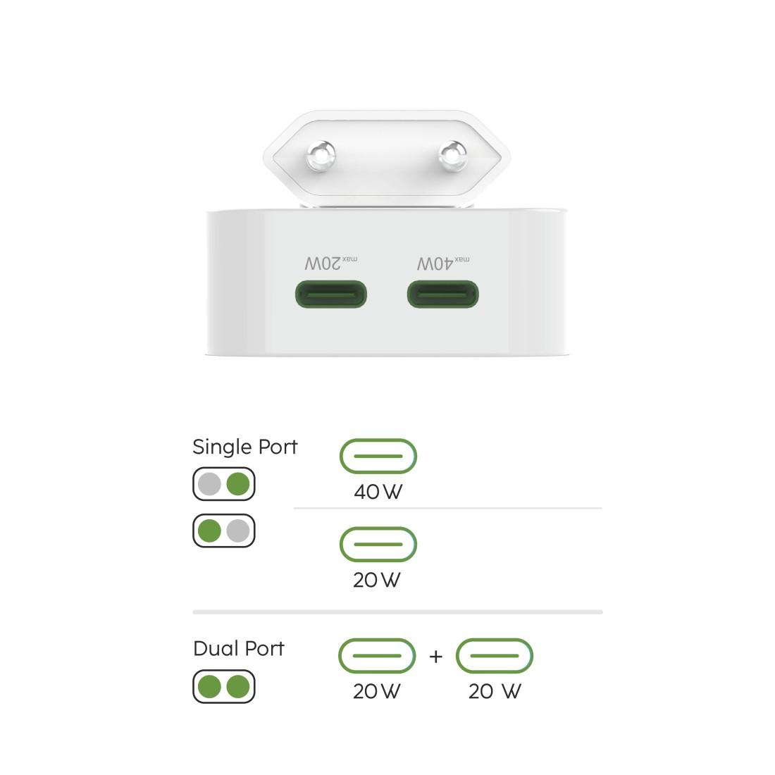 HAMA Бързо мини зарядно GaN, 2 x USB-C, PD, 40 W, сгъващ се адаптер, бял