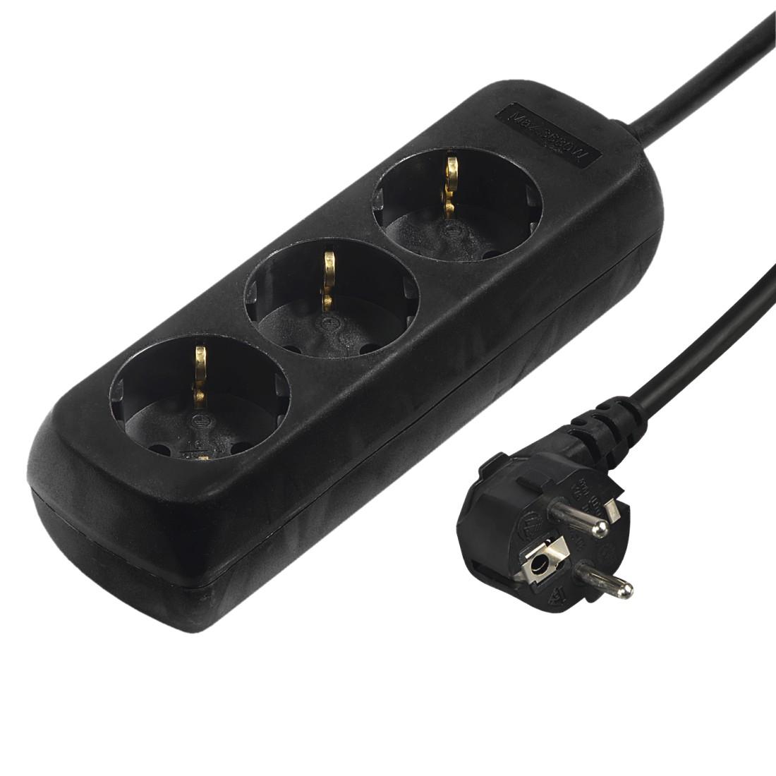 Разклонител с 3 стандартни гнезда Дължина на кабела: 1.4 метра Цвят: черен Максимално натоварване 3680 W Работно напрежение 250 V