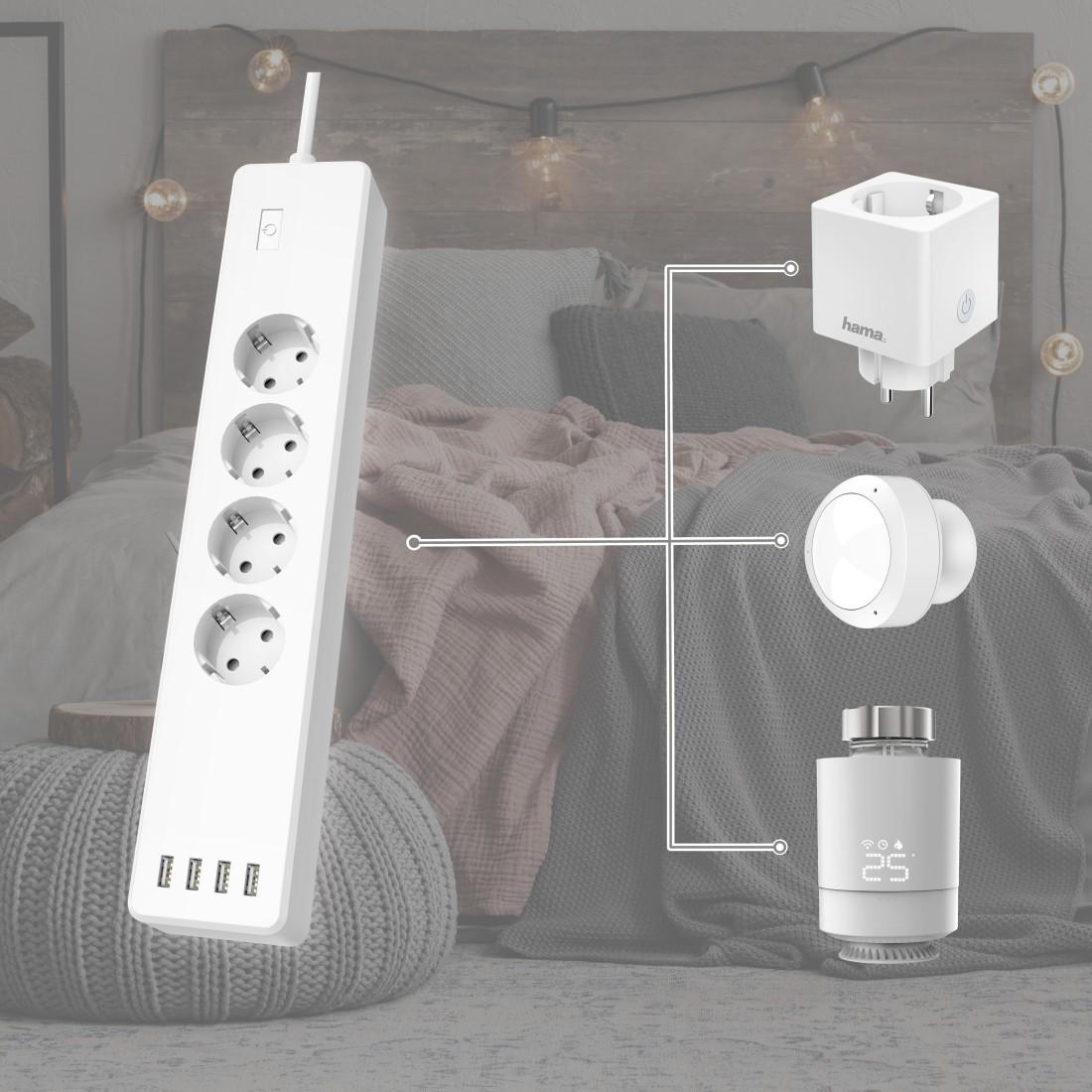 HAMA Смарт разклонител Wi-Fi 2.4Ghz, 4 гнезда, 4xUSB, 1.7 m, бял
