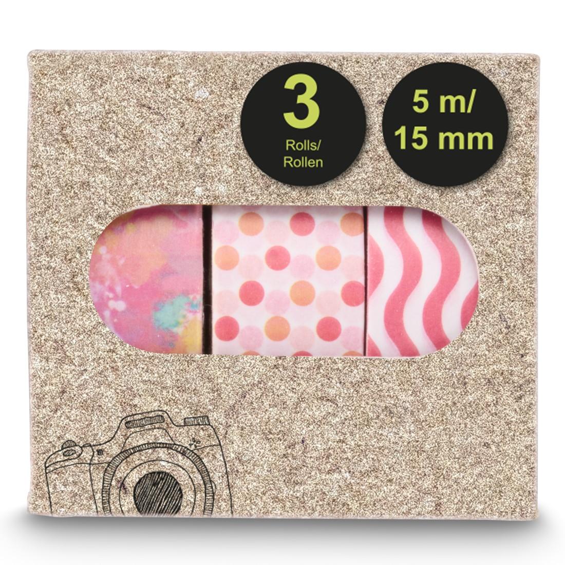 Хартиено тиксо за снимки, 1.5×500 см, различни мотиви, в комплекти от 3 бр Цветни самозалепващи ленти, предназначени за креативно декориране и персонализиране на албуми, дневници, scrapbooks, подаръци, картички и други проекти „направи си сам“. Основни характеристики: Мотиви: Графични шарки, едноцветни пастелни ленти, ярки цветове и класическо черно Приложение: Декориране на фотоалбуми, канцеларски материали и подаръчни опаковки Декориране на домашни аксесоари като дървени столове, рафтове, вази и саксии Upcycling и креативни проекти за пазари и базари Етикетиране и организиране на кутии за съхранение, папки и други Тип продукт: DIY (Do It Yourself) Позволява личен и уникален стил за всякакви проекти Лесни за залепване и премахване без повреда на повърхността