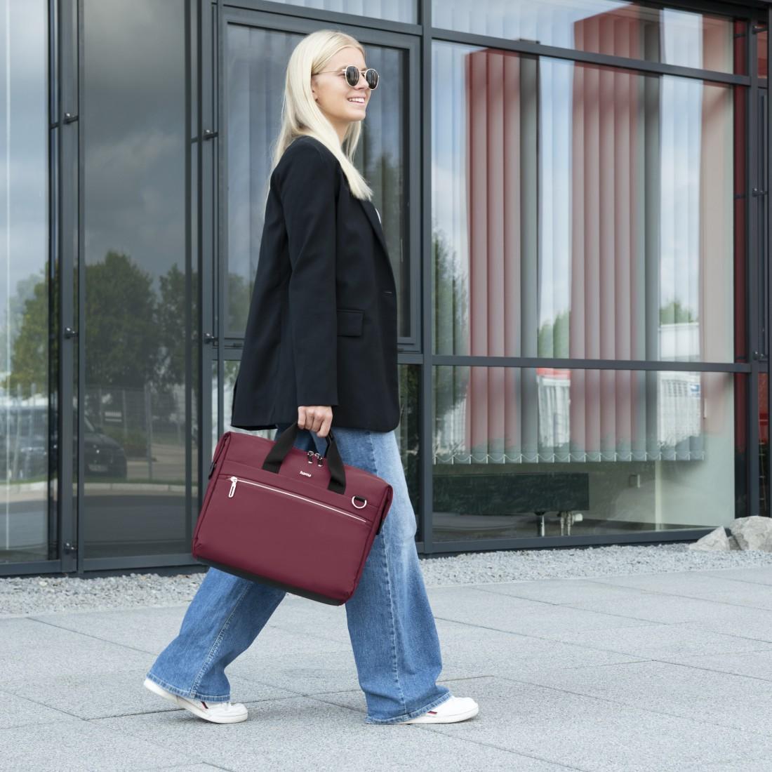 Технически характеристики Тип: Чанта за лаптоп Подходяща за лаптопи: до 41 cm (16.2″) Материал: Полиестер Форма: Бизнес чанта Външни размери (Ш x Д x В): 44.5 x 7 x 34 cm Вътрешни размери (Ш x Д x В): 43.5 x 6 x 33 cm Тегло: 735 g Основни предимства Подплатено отделение за лаптоп Джоб за таблет – допълнително отделение за таблет до 28 cm (11″) в основния отсек. Просторни отделения с органайзер структура – лаптоп отделението и предните джобове разполагат с вътрешна организация за химикалки, USB флаш памети, карти памет и лични вещи. Широк 2-посочен цип – по-дълъг от ширината на основното отделение за по-лесно отваряне, подреждане и изваждане на лаптопа. Магнитно фиксиране на ципа – краищата на ципа се закрепват странично с магнити – стилен акцент с визия тип еко кожа. Водоотблъскващ външен материал – защита на техниката при лошо време. Подсилено водоотблъскващо дъно – стабилна основа, лесна за почистване, предпазва от влага и замърсяване. Trolley strap – удобно закрепване към дръжка на куфар при бизнес пътувания. Подплатена презрамка – регулируема и сваляща се за максимален комфорт. Подсилени дръжки – здрави и удобни за носене в ръка. Допълнителни удобства Отделен вътрешен джоб с цип за пари, ключове и ценности Малки вътрешни джобове за аксесоари Стабилни метални ципове, халки и карабини с отличен захват