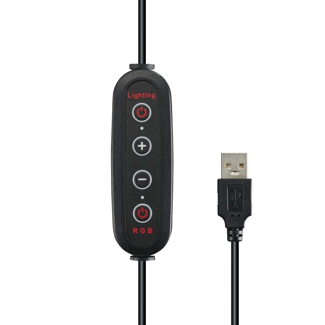 Основни характеристики Тип продукт: LED ринг лампа със статив Подходяща за: смартфони, стрийминг, TikTok, YouTube, грим, продуктова фотография Модел: Smartphone Ring Light (Ø 26.5 cm) Захранване: USB 5V / 1.53A (външен източник) Консумация (Pon): 7.5 W Осветление Брой LED диоди: 158 Макс. светлинен поток: 1100 lm Цветна температура (3 степени): Топла светлина – 3000 K Неутрална – 4500 K Дневна светлина – 6500 K RGB режим: 29 цветови режима с динамични ефекти Регулиране на яркостта: 9 степени (бяла светлина) 8 степени (RGB режим) Dimmable: Да Конструкция и монтаж Диаметър на ринга: 265 mm Максимална височина: 138 cm Минимална височина (настолен режим): 52 cm Тегло: 1200 g Дължина на кабела: 190 cm Гъвкаво рамо (swan neck): 11 cm Държач за смартфон: Със сферична глава (ball head) Поддържа портретен и пейзажен режим Свързване и разширяемост 3 × ¼” резбови връзки (за аксесоари, адаптери, допълнителни държачи) 4 × Cold Shoe връзки (за микрофон, уебкамера, допълнително осветление и др.) Предимства 29 RGB режима за креативни видеа „Charming eye effect“ – естествен блясък в очите Подходяща за снимане седнал или прав Сгъваема и лесна за пренасяне Може да се използва и като настолен трипод