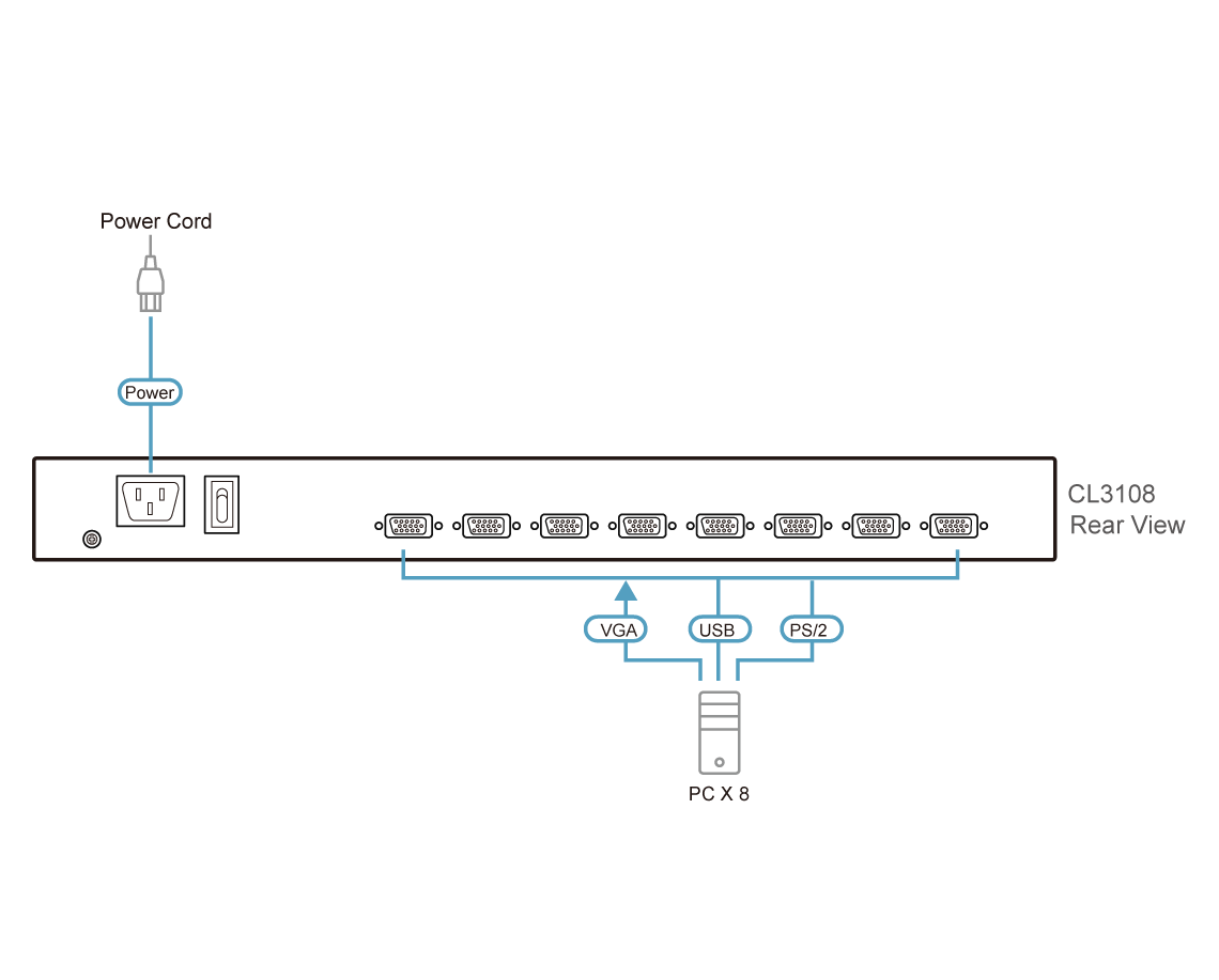 KVM Конзола ATEN 19″ 8-Port PS/2-USB VGA Single Rail LCD KVM Switch