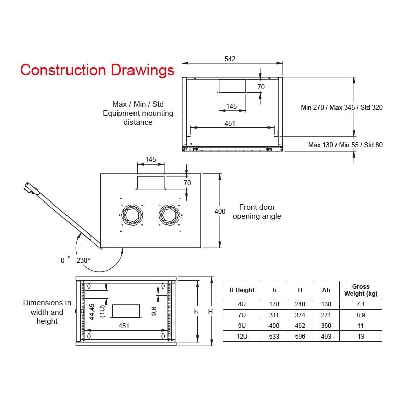 LANDE Комуникационен шкаф STB Security Box, 540x400mm, 7U , 19″