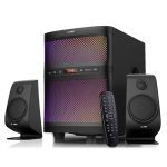 F&D F580X 2.1 Multimedia Speakers, 70W RMS (17.5Wx2+35W), 2×1”Tweeter + 2×3” Satellites + 8” Subwoofer, BT 4.2/AUX/USB/FM/SD card reader/Multi-color LED/LED Display/Remote Control/Black