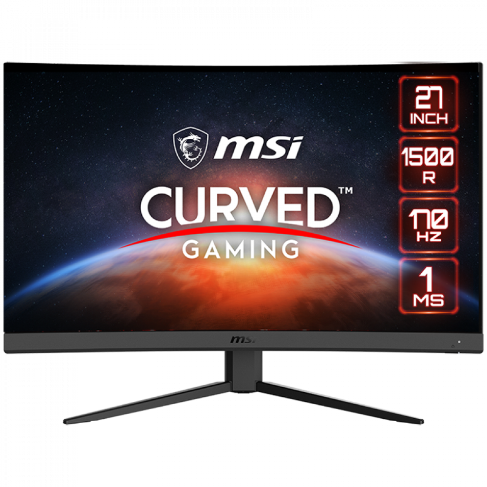 MSI G27CQ4 E2 Curved Gaming Monitor, 27″ 170Hz, WQHD (2560 x 1440) 16:9, VA Anti-glare, 1ms, 250nits, 3000:1, 178°/178°, 1500R Curve, Freesync, Adjustable Stand, 1x DP, HDMI, 3Y Warranty