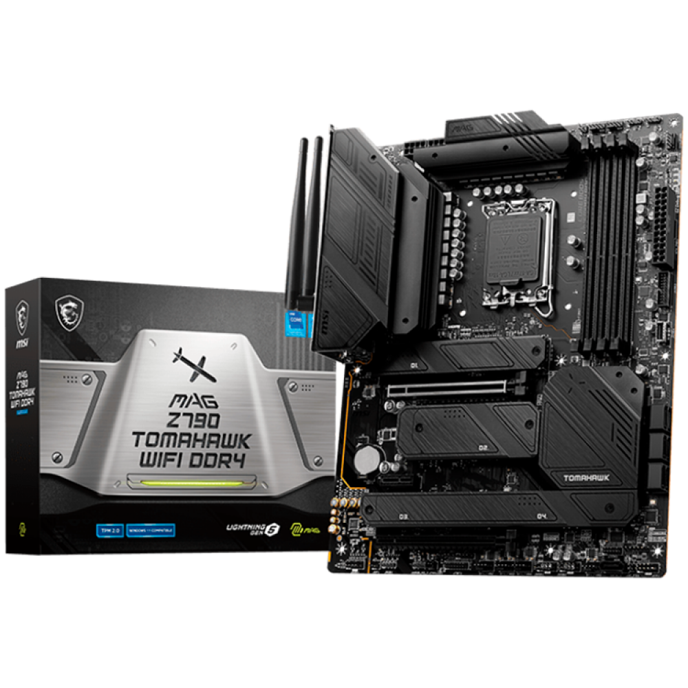 MSI MAG Z790 TOMAHAWK WIFI DDR4, ATX, Socket LGA 1700, Dual Channel DDR4 5333+(OC)MHz, 2x PCIe x16 slots, 4x M.2 slots, 1x HDMI, 1x DP, 2x USB 3.2 Gen1, 1x USB 3.2 Gen2, 4x USB 2.0, Type-C, 7.1 HD Audio, 2.5Gbps LAN
