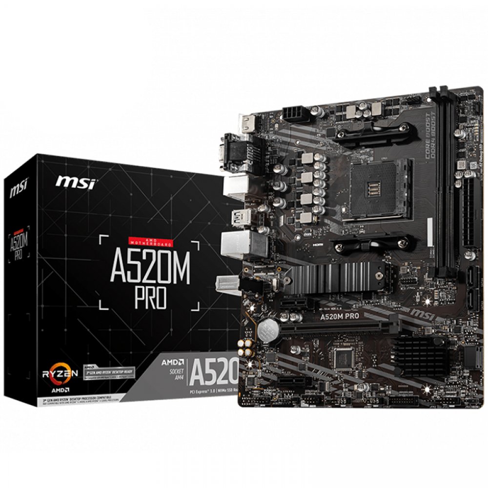 MSI Main Board Desktop A520M PRO (AM4, 2xDDR4, 1xPCI-E X16, 2xPCI-E X1, 4xSATA3, 1xM.2, RAID, 6xUSB3.2 Gen1, 6xUSB2.0, DP, VGA, HDMI, Audio, GLAN) mATX Retail