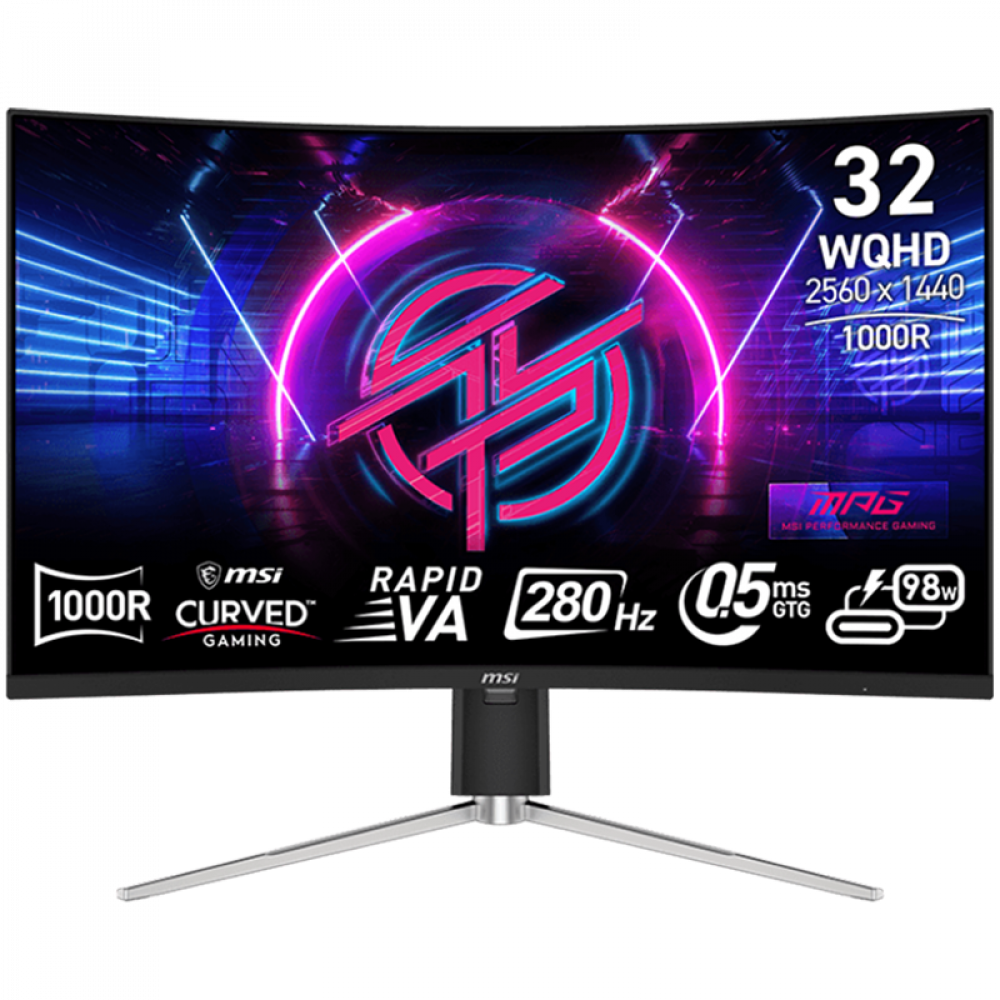 MSI MPG 325CQRXF Gaming Monitor, 31.5″ 280Hz, WQHD (2560×1440) 16:9, Rapid VA, Anti-glare, 0.5ms, 350nits, 3200:1, 178/178, 1000R Curve, Adaptive Sync, DisplayHDR 400, Adjustable Stand, 1x DP, 1x HDMI, 1x Type-C 98W, USB Hub, 3Y Warranty