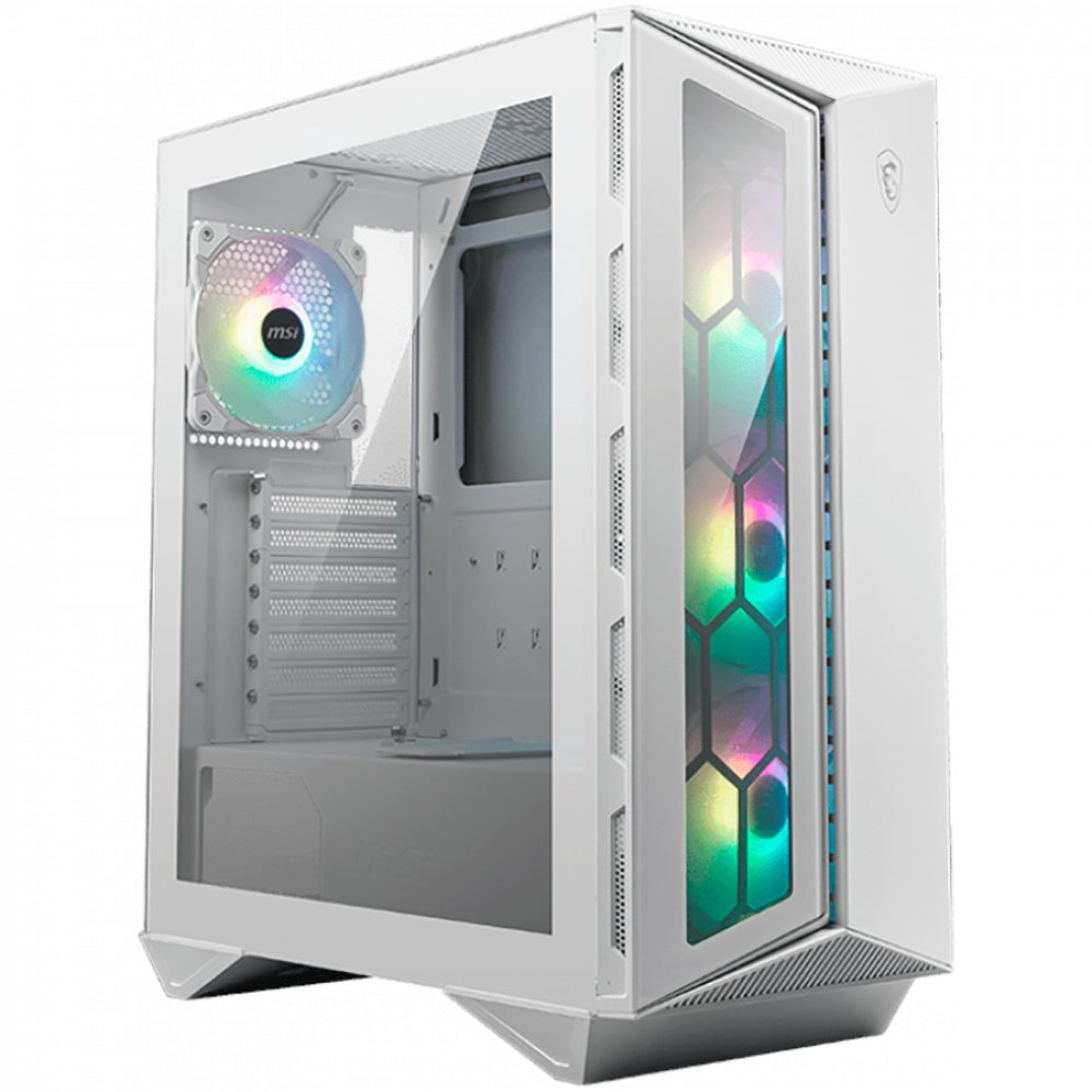 MSI MPG GUNGNIR 300P AIRFLOW, Mid-Tower, E-ATX/ATX/M-ATX/ITX, 2x USB 3.2 Gen 1 Type-A, 1x USB 3.2 Gen 2×2 Type-C, 1x Audio/1x Mic, ARGB Hub, 4x 120mm ARGB Fans, 1mm Perforated Front Panel, 3mm Tempered Glass