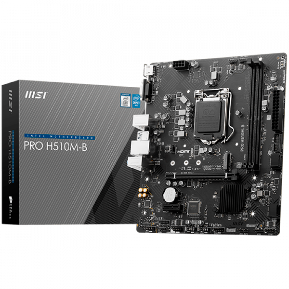 октомври 1, 2025MSI PRO H510M-B DDR4, mATX, Chipset H470 (supports only 10th Intel processors), Socket 1200, Dual Channel DDR4 up to 2933MHz, 1x PCIe x16 slots, 1x M.2 slots, 1x HDMI, 1x VGA, 2x USB 3.2 Gen 1, 4x USB 2.0, 7.1 HD Audio, 1Gbps LAN, EZ Debug LED, 3Y
