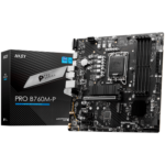 MSI PRO B760M-P, mATX, LGA 1700, Dual Channel DDR5 6800, 1x PCIe x16 slots, 2x M.2 slots, 1x HDMI, 1x DP, 1x VGA, 1x USB 3.2 Gen 2 Type-C, 1x USB 3.2 Gen 1, 4x USB 2.0, 7.1 HD Audio, 1Gbps LAN, 3Y
