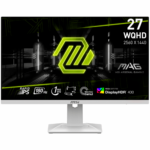 MSI MAG 274QRFW Gaming Monitor, 27″ 180Hz, WQHD (2560×1440) 16:9, Rapid IPS Anti-glare, 1ms, 400nits, 1000:1, 178/178, AMD FreeSync, DisplayHDR 400, Adjustable Stand, 1x DP, 2x HDMI, 1x Headphone out, White, 3Y Warranty