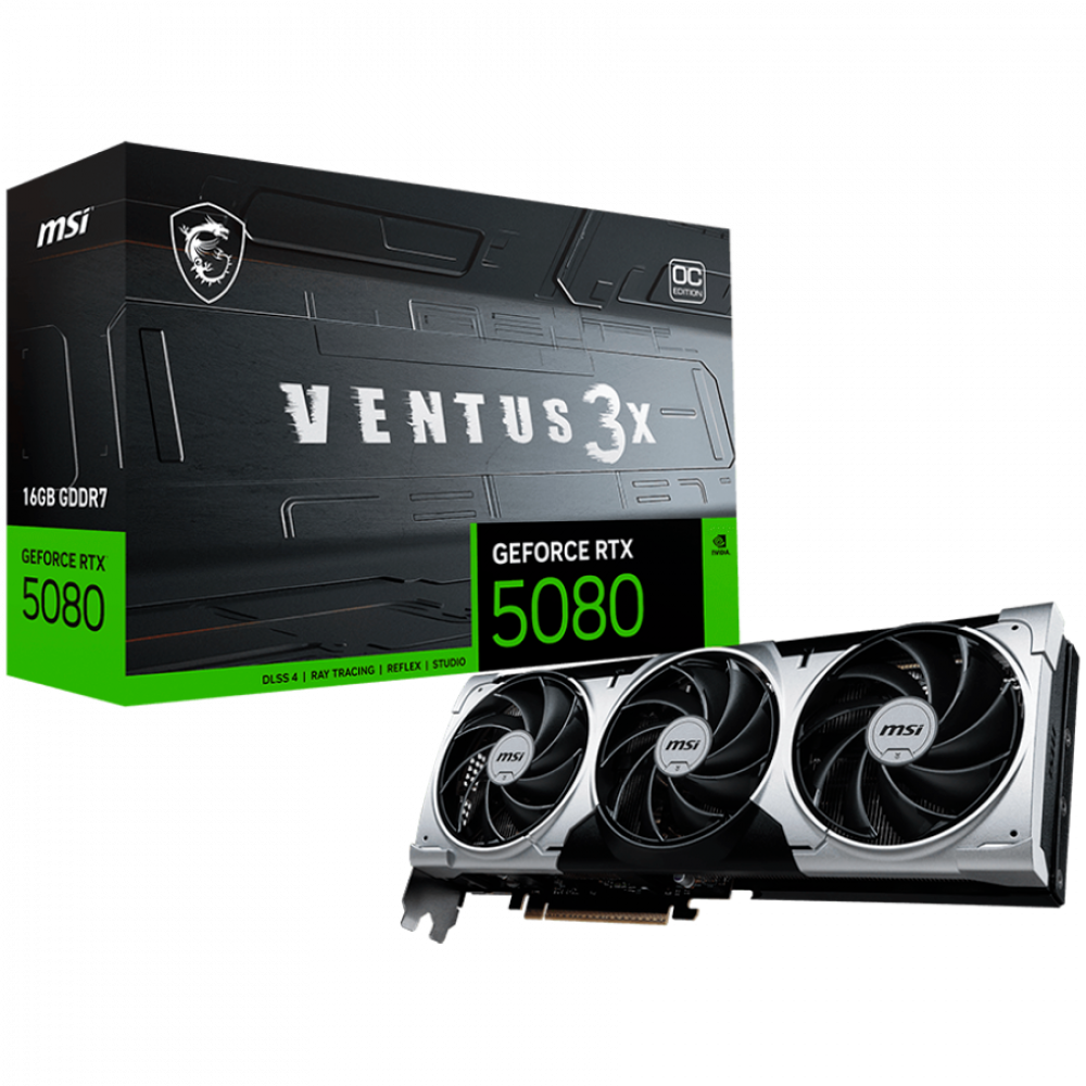 MSI Video Card Nvidia GeForce RTX 5080 16G VENTUS 3X OC PLUS, 16GB GDDR7, 256bit, Effective Memory Clock: 30000MHz, Boost: 2617 MHz, 10752 CUDA Cores, PCIe 5.0, 3x DP 2.1a, HDMI 2.1b, RAY TRACING, Triple Fan, 1x16pin, 850W Recommended PSU, 3Y