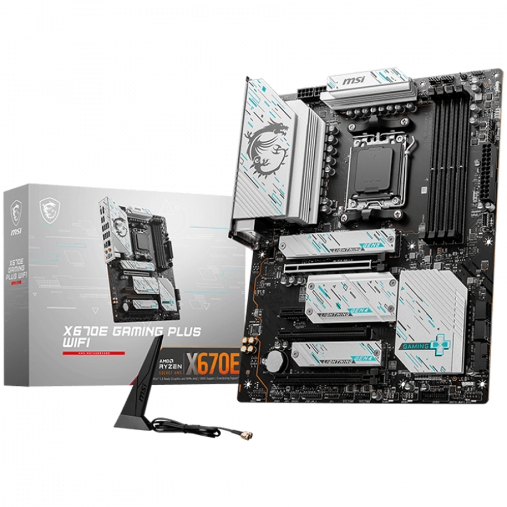 октомври 1, 2025MSI X670E GAMING PLUS WIFI, ATX, Socket AM5, AMD x670 4 x DDR5 UDIMM Dual Channel up to 7800+(OC)MHz, 1x PCIe 4.0/3.0 x16 slot, 4x M.2 slots, 4x USB 3.2 Gen 1 ,4x USB 2.0, 1x HDMI, 1x DP, WiFi, BT, 2.5G LAN, 7.1 Audio, 3y warranty
