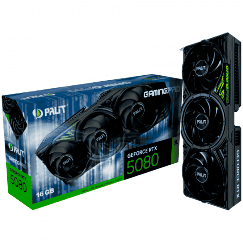 PALIT GeForce RTX 5080 GamingPro 16GB GDDR7, 256 bit, 1x HDMI 2.1b, 3x DP 2.1b, 3 Fan, 1x 16-pin pwr connector, 850W, 331.9 x 127.1 x 60 mm, NE75080019T2-GB2031A