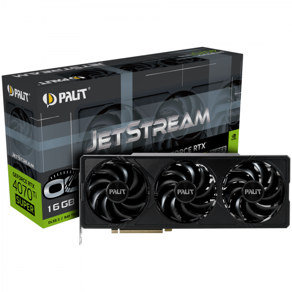 Palit RTX 4070Ti Super JetStream OC 16GB GDDR6X, 256 bit, 1x HDMI 2.1a, 3x DP 1.4a, 3 Fan, 1x 16-pin power connector, recommended PSU 750W,