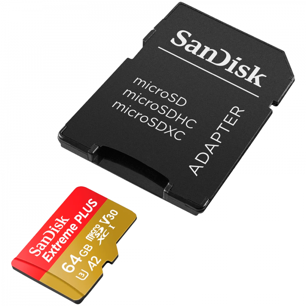 SanDisk Extreme PLUS microSDXC 64GB + SD Adapter + 2 years RescuePRO Deluxe up to 200MB/s & 90MB/s Read/Write speeds A2 C10 V30 UHS-I U8