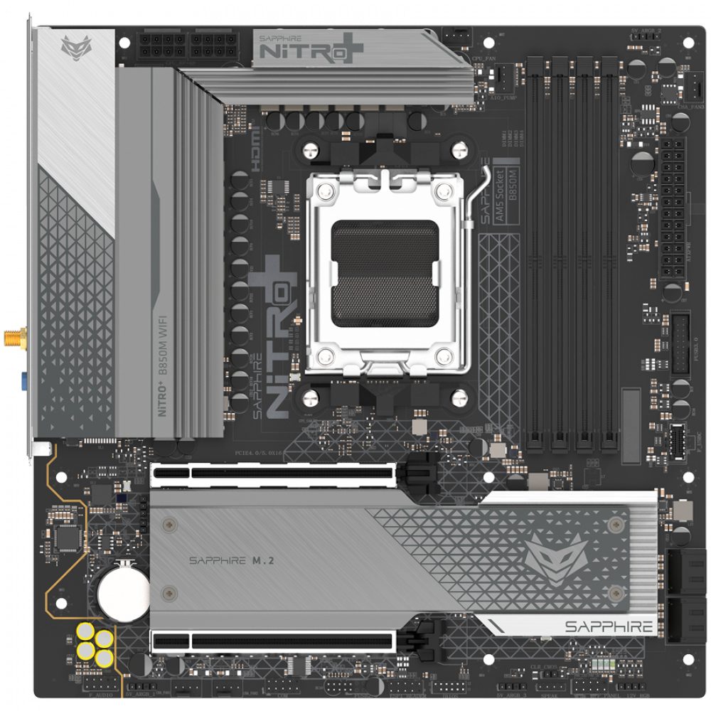 SAPPHIRE AMD B850M AM5 NITRO+ Ryzen R9/R7/R5, 4x DDR5 8000MHz, PCIE 5.0 x 16, 1x M.2 Gen5, 1x M.2 Gen4, LAN 2.5 Gbps, WIFI6, USB, Micro-ATX