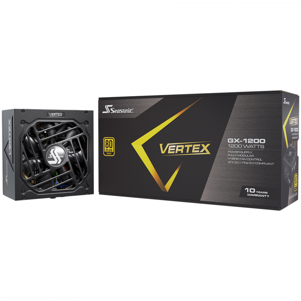 Seasonic VERTEX GX-1200 Gold, ATX 3.0, 80 PLUS GOLD, 135mm FDB Fan, Fully Modular, PCIe Gen 5 Cable (12VHPWR) included, 10 Years Warranty (1VT12GFRT3A14X)