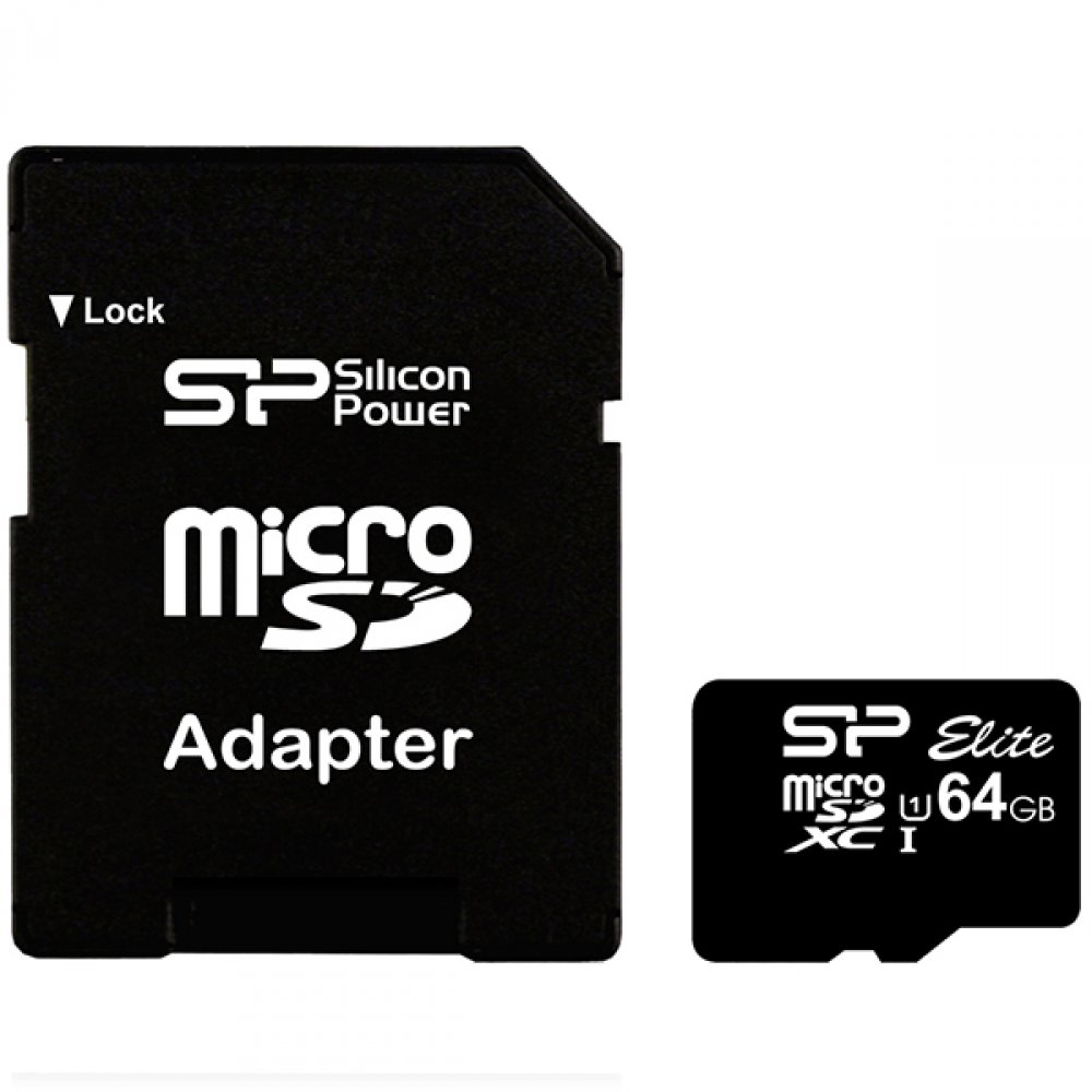 Silicon Power Elite /class 10 64GB mSD Card UHS-1 (U1) R/W: up to 85/10 MB/s, ECC function, Shock/water/x-ray-proof, w/ adapter