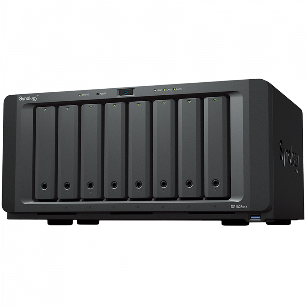 септември 30, 2025Synology DS1823xs+,Tower,8-Bay 3.5”SATA HDD/SSD, 2xM.2 2280 NVMe SSD,CPU AMD Ryzen V1780B 4-core 3.35(base) /3.6(turbo)GHz,8 GB DDR4 ECC SODIMM,2xRJ-45 1GbE LAN, 1xRJ-45 10GbE LAN,3 xUSB 3.2 Port, 2xeSata, 1xOut-of-Band Management LAN Port,6.2kg,5y