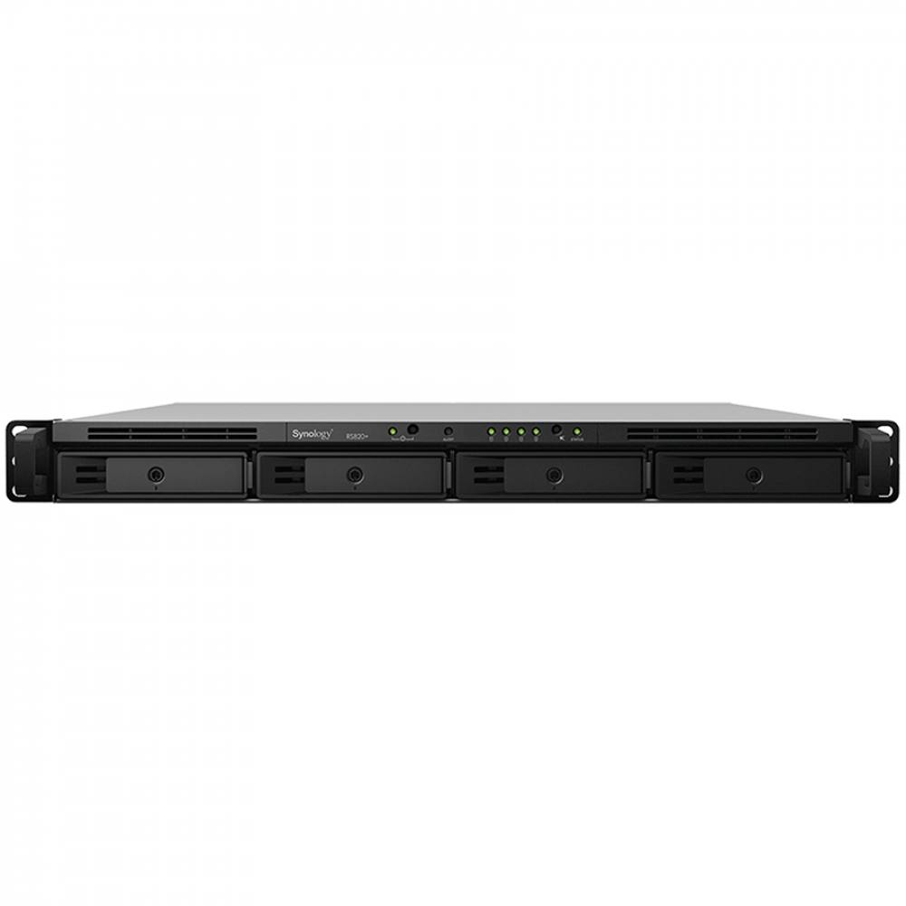 Synology RackStation RS822RP+; Rack 1U; AMD Ryzen V1500B 4-core 2.2 GHz; 2 GB DDR4 ECC SODIMM; 4x 3.5”/2.5” HDD bays; 4x RJ-45 1GbE LAN Port; 2x USB 3.2 Gen 1 Port; eSATA Port; redundant power supply, 3yr warranty