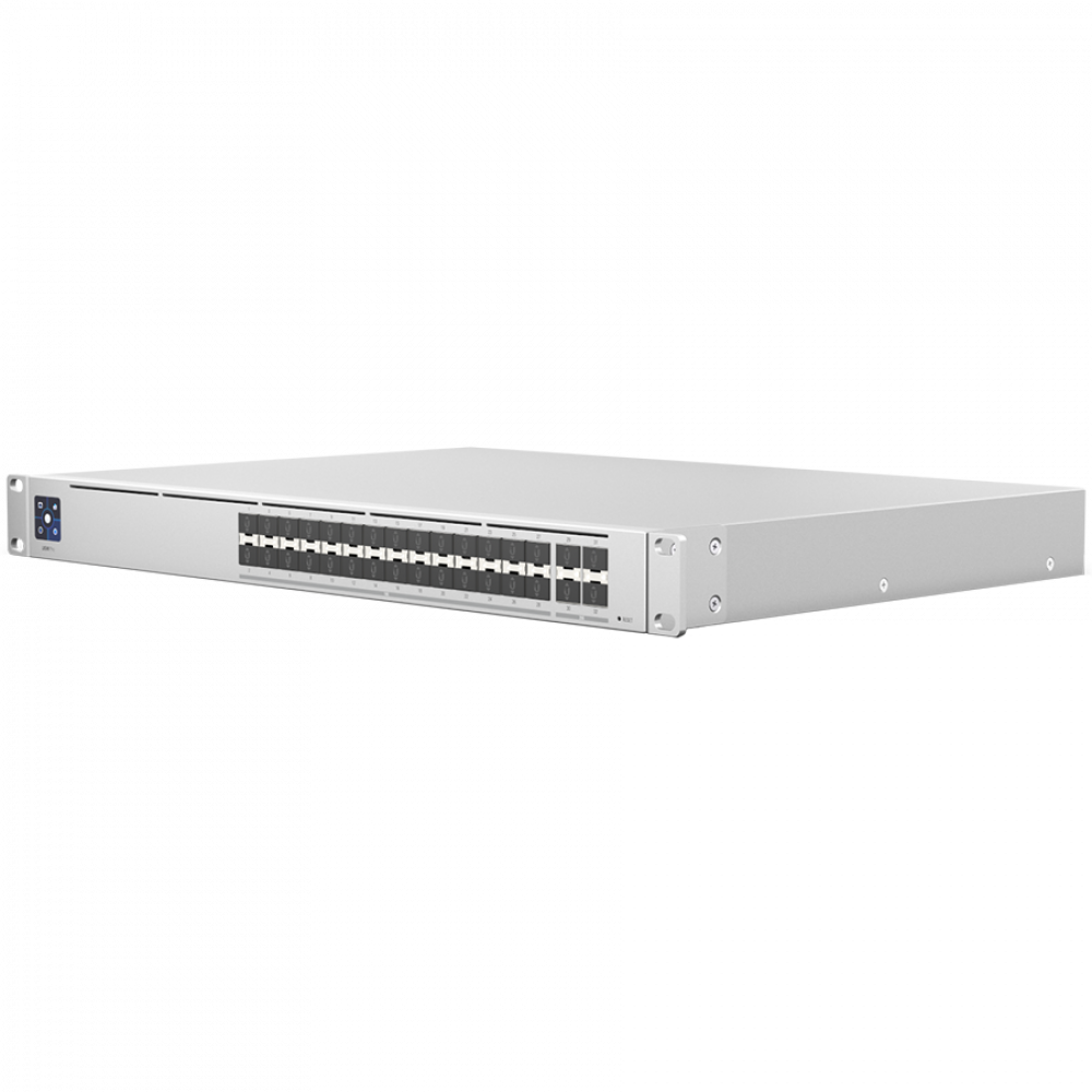 UBIQUITI Hi-Capacity Aggregation; (28) 10G SFP+ ports; (4) 25G SFP28 ports; DC power backup-ready; Layer 3 switching.
