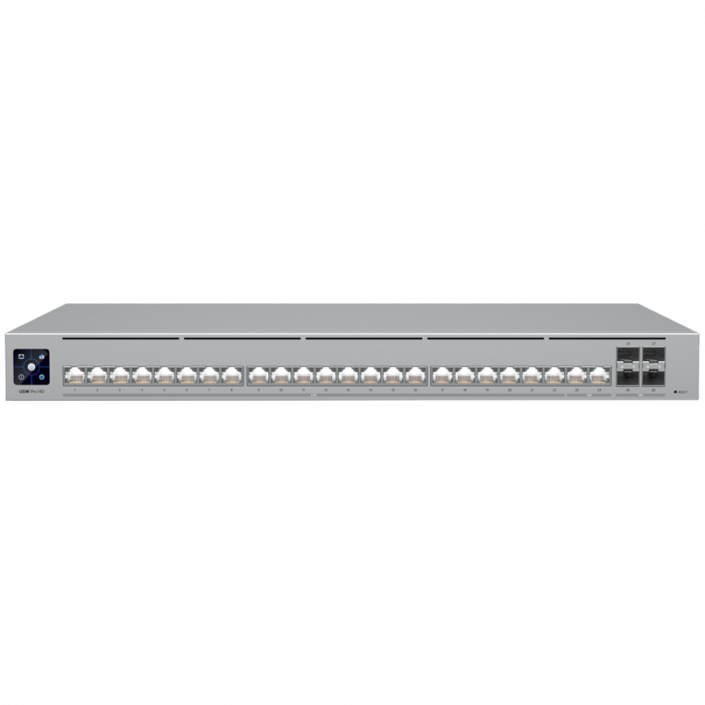 Ubiquiti Layer 3 Etherlighting USW-PRO-HD-24-POE-EU (22) 2.5 GbE, (2) 10 GbE PoE++ ports, (4) 10G SFP+ ports, DC power backup ready