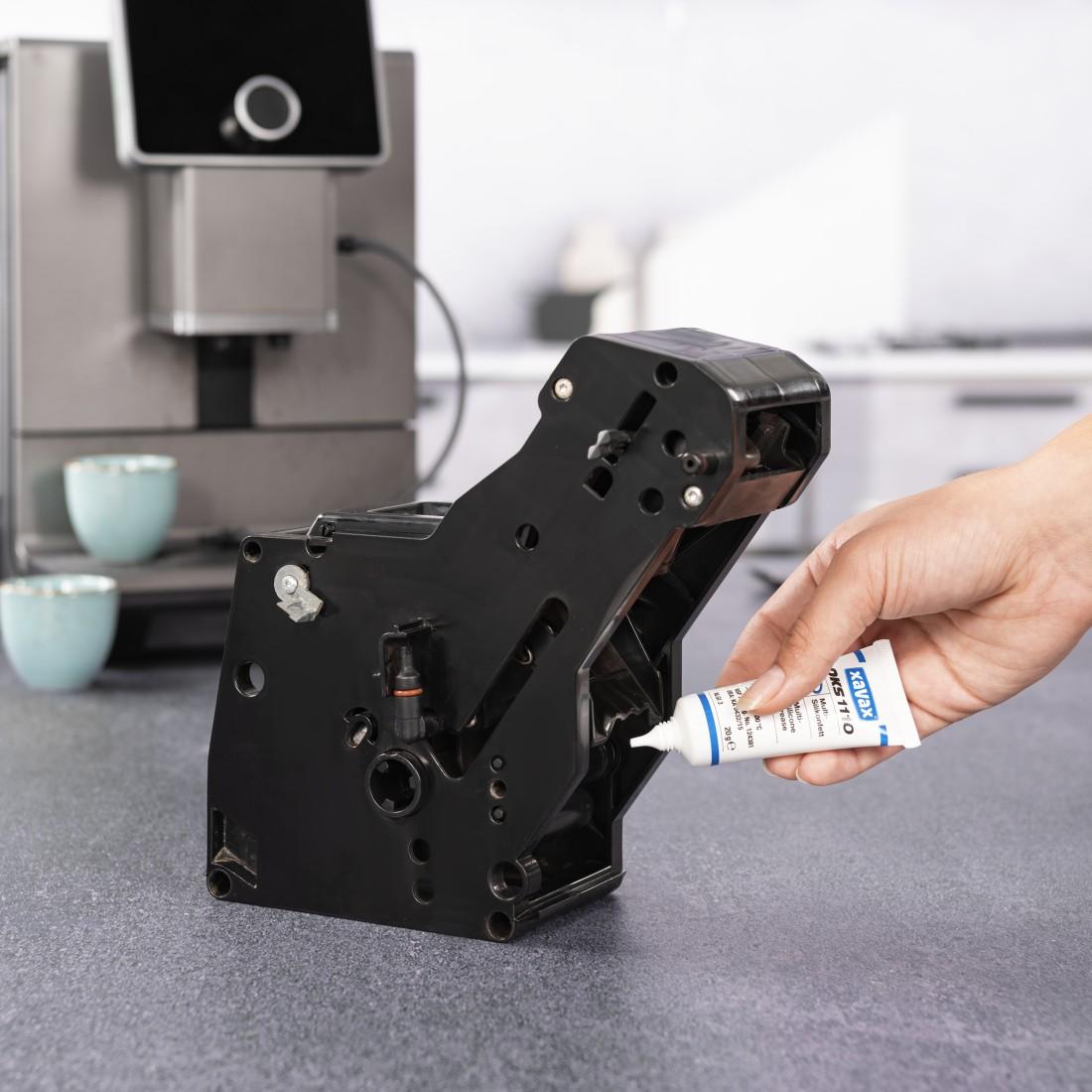 Специална смазочна грес за кафемашини, модули за варене и много други: безопасната за храна мултисиликонова грес е уплътнителят и лубрикантът за всички случаи в кухнята, домакинството, банята и работилницата – и идеална за гресиране на движещите се части в напълно автоматично кафе агрегати за варене Физиологично безвреден, без мирис и вкус: прозрачната силиконова грес е безопасна за храна и не оставя собствен вкус – за неподправено, пълноценно удоволствие от кафето Греста за кафе машина поддържа уплътнителните пръстени и подобрява уплътнителния ефект и подвижността на отделните части – без скърцане Идеален за поддръжка, защита и грижа за по-дълъг живот на автоматични кафемашини, филтърни кафемашини и еспресо машини Студо- и топлоустойчива на температура и гъвкава за използване в среда от -40° до +200° Целзий Универсален: водо- и пароустойчив с отлична адхезия към всички материали Подходящ за вентили за студена и топла вода: като смазка и за инсталации за отопление, санитария, хранителна техника и др. Също така като смазочно масло за смазване на уреди като кухненски роботи или блендери Висока устойчивост, не се смолява: постоянно добри смазочни свойства и вискозитет без изсушаване, втвърдяване, устойчив на ацетон, етанол, етилен гликол, глицерин и метанол Съвместим с обикновен EPDM каучук, както и с пластмаси и еластомери Произведено в Германия