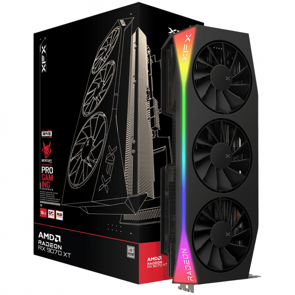 XFX Mercury AMD Radeon RX 9070XT OC Gaming Edition with RGB 16GB GDDR6, HDMI 3xDP